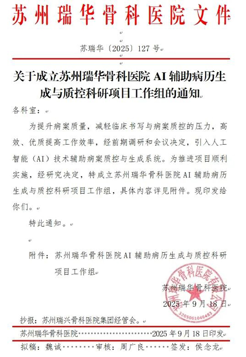 苏州瑞华骨科医院启动AI病案辅助系统建设