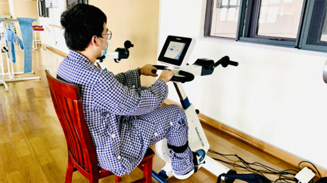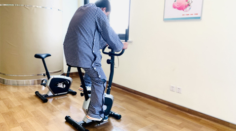 治疗师根据患者情况,选择相应的器械指导患者完成有氧耐力或维持关节活动度等训练。